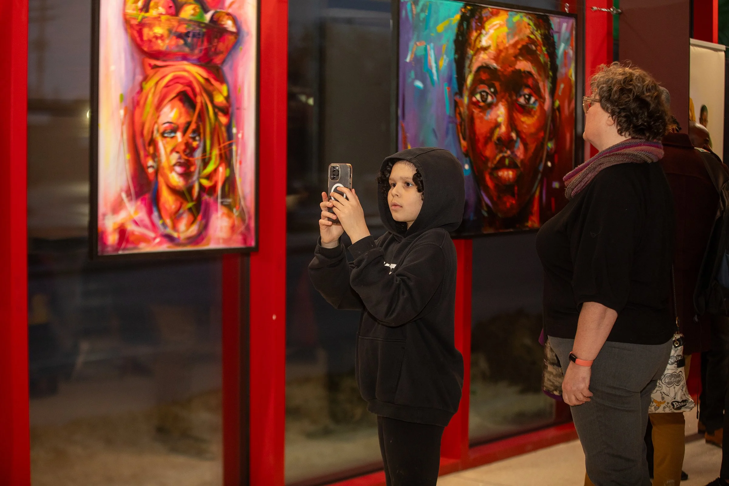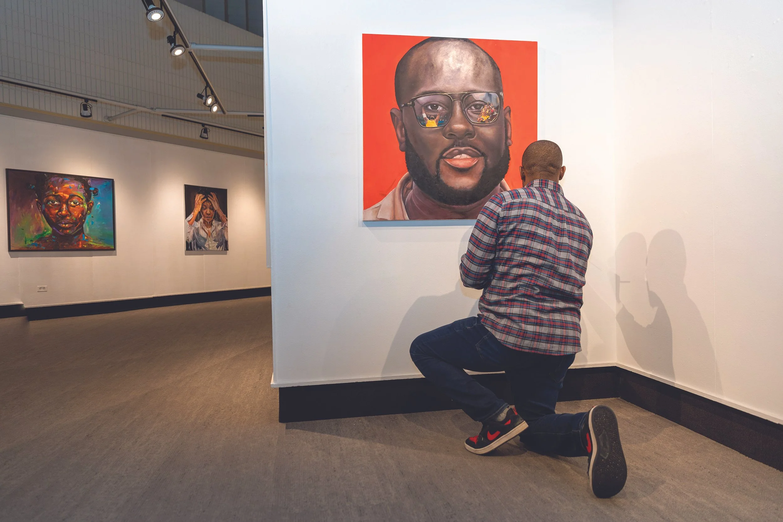 “Standing beside a portrait that reflects strength, identity, and quiet confidence. This exhibition piece captures the beauty of presence and the depth of personal story through colour, texture, and expression.”